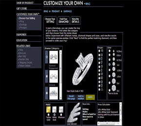 Not all of the jewelry in the site is up for customization. You will only be able to customize certain rings, engagement rings, wedding bands and the like. Their design application is not very impressive or attractive. Because the application is very outdated, it can be a challenge to design a custom ring. To add to that, a lot of the rings displayed in their design center have very limited design/customization options. For some of them, you will only be able to choose the setting and the metal type but not the diamond cut/style and carat.